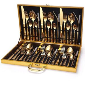 - Cubiertos de acero inoxidable 18/0 de la mejor calidad y una capa de titanio oro de alta temperatura...