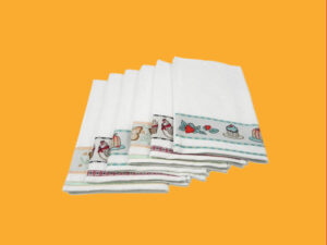 - SET 6 PAÑOS: Juego de paños de cocina rizo 100% algodón con dibujos bordados en la cenefa. (El...
